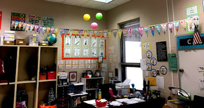 Teacher Ms. Bolin sent me this photo of her comparing fraction size pennant activity being used to decorate her classroom door: