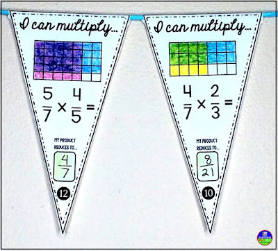 Teacher Ms. Bolin sent me this photo of her comparing fraction size pennant activity being used to decorate her classroom door: