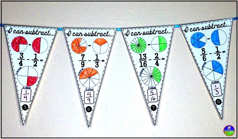 Hi! I’m Shana from Scaffolded Math and Science. It is very exciting to be writing this guest post today, especially being asked specifically by Gina Wilson from All Things Algebra to write about my fraction math pennants for the KidCourses Blog! To me, student confidence is everything. When students see their best work displayed, it builds so much confidence that carries them through the tougher days. With math pennants, students get to see their work displayed and teachers get a cute bulletin board all at the same time. They’re a win-win!